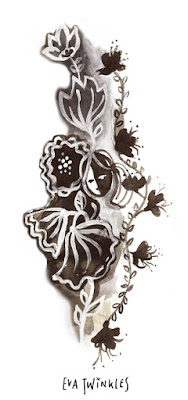 Above is how I got started, drawing a little toad lily from our garden. For Inktober 2 the lily quickly morphed into a little night-time story, that then turned into a whole "Nocturne" series.
